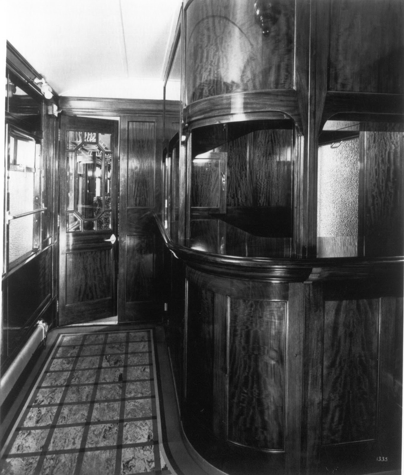 Detalle del departamento de bar de los coches Pullman de los Ferrocarriles Vascongados