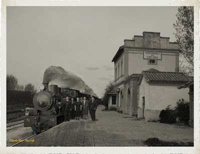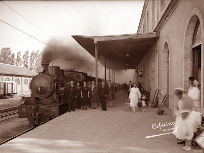 Fotografía original utilizada en el fotomontaje de la estación de Hontanares de Eresma, tomada por el fotógrafo vitoriano Ceferino y propiedad del Archivo Municipal del ayuntamiento de Vitoria