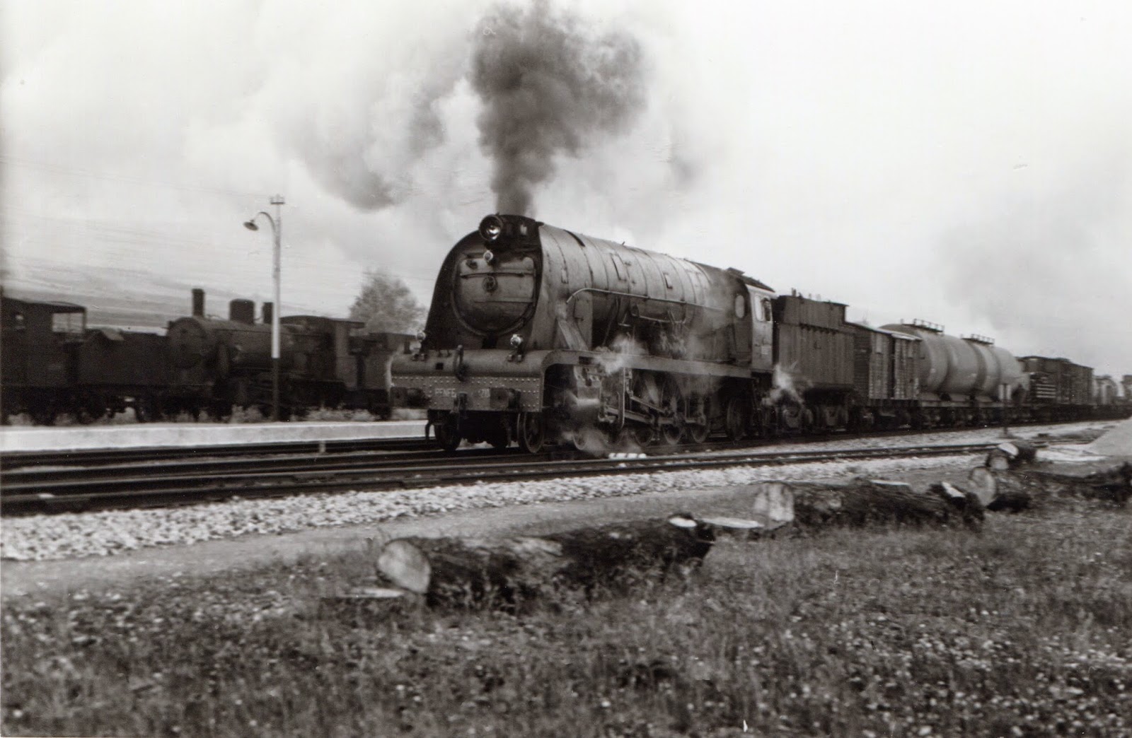 Tren de mercancías a su paso por la estación burgalesa de Santa Olalla. Fotografía de Xavier Santamaría. Archivo EuskoTren/Museo Vasco del Ferrocarril