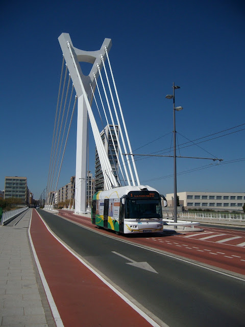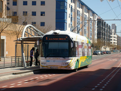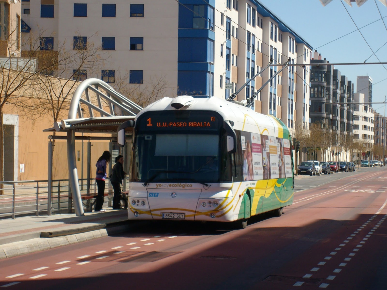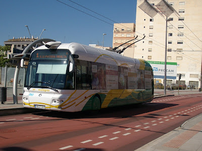 Muchos conocen mi particular debilidad e interés por los trolebuses, por lo que aproveché la ocasión para conocer el llamado TRAM de Castellón que, pese a lo que su nombre pueda dar a entender, no se trata de un tranvía sino de un trolebús dotado de un sistema de guiado óptico, equipo que facilita las maniobras de aproximación a las paradas, lo que contribuye a mejorar la accesibilidad de los viajeros.
