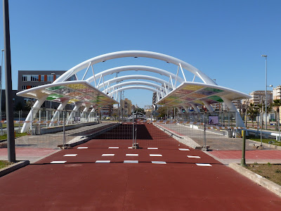 La implantación del primer tramo del TRAM ha incluido la construcción de un espectacular puente sobre el cauce del río Sec. En todo caso, esta clase de obras encarecen notablemente el establecimiento de este tipo de servicios