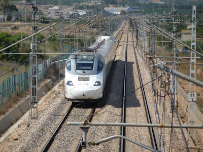De inmediato le respondí a mi buen amigo que, en realidad, no tenía nada de sorprendente el hecho de que el tren circulase por su derecha ya que, de hecho, es la norma general en Adif y la práctica habitual en sus líneas de Alta Velocidad, aunque como éstas disponen de señalización que permite la banalización (es decir, circular indistintamente por las dos vías en ambos sentidos) también es posible ver circulaciones por la izquierda, por ejemplo, adelantamientos en plena vía de trenes más rápidos a otros más lentos, como el caso de los AVE frente a los Alvia.