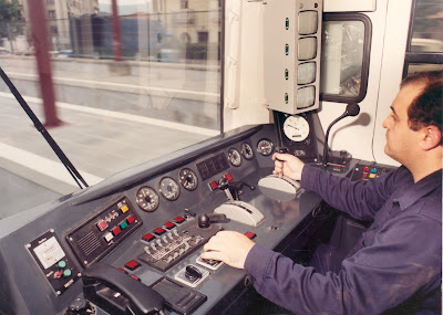 Las unidades 300 de EuskoTren se diseñaron específicamente para circular en el "Topo", por lo que el pupitre de conducción se situó a la derecha