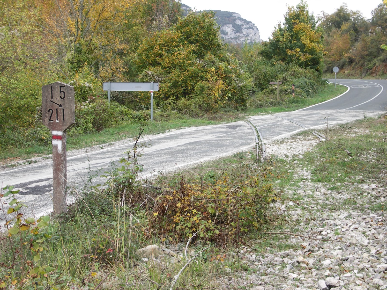 Abandonado paso a nivel del inconcluso ferrocarril de Santander al Mediterráneo