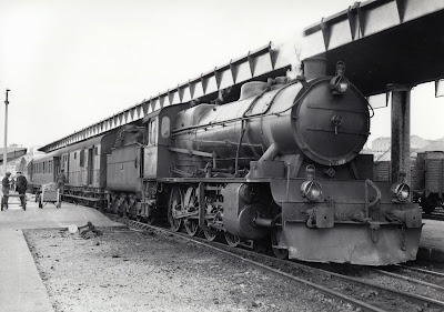 Locomotora de vapor "Mikado" fotografiada en la estación de Soria por Martin Dieterich