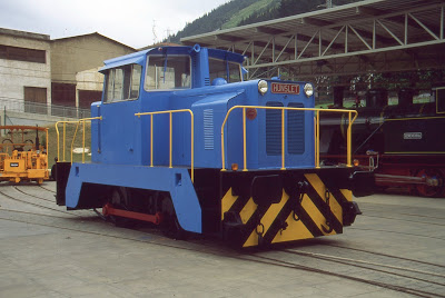 Locomotora Hunslet Nº 1 de la Compañía Orconera, fotografiada en los talleres de mantenimiento de Ansio