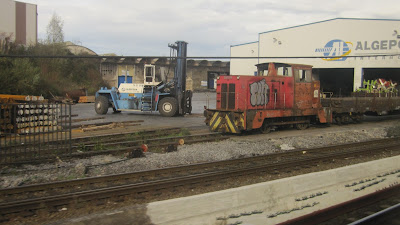 En la actualidad, la locomotora Hunslet Nº 1 de Orconera presta servicio en las instalaciones de la empresa Algeposa de Irún. Se aprecia que ha sido suprimido el eje central. Fotografía de Ángel Briz