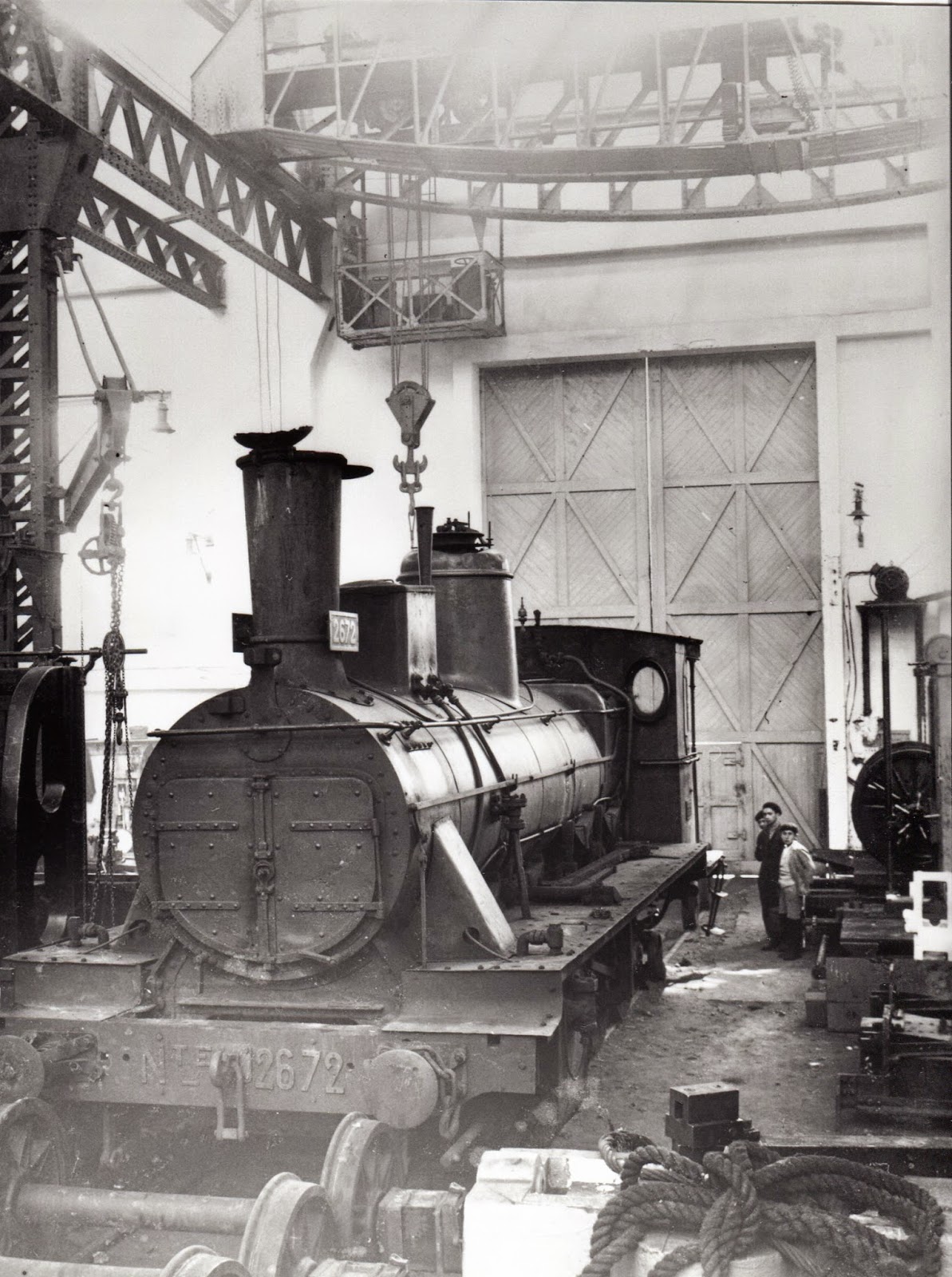 Reconstrucción de anticuadas locomotoras en los talleres Euskalduna. Archivo EuskoTren/Museo Vasco del Ferrocarril