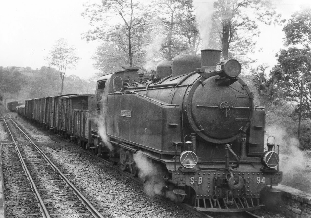 El intenso tráfico de viajeros y mercancías que registraba la línea de Santander a Bilbao exigió disponer de las locomotoras más modernas y potentes del momento, como es el caso de la "Víctor Chávarri", la primera "Mikado" que circuló en España. Estación de Aranguren. Archivo EuskoTren/Museo Vasco del Ferrocarril