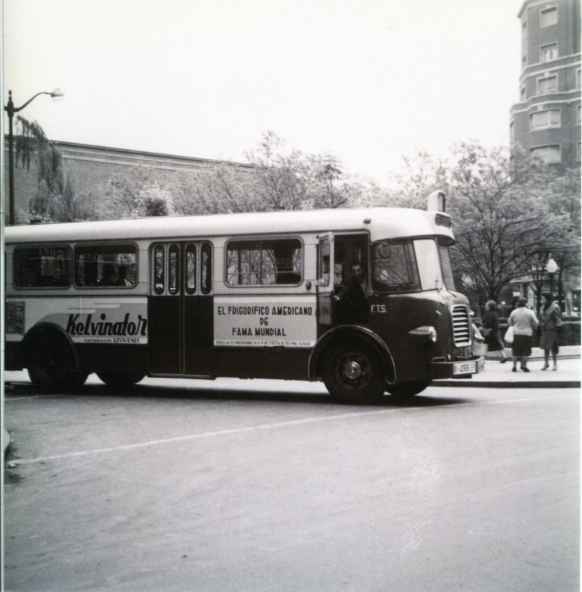 Autobús de los FTS en la plaza del Conde Aresti. Archivo Rótulos Flores