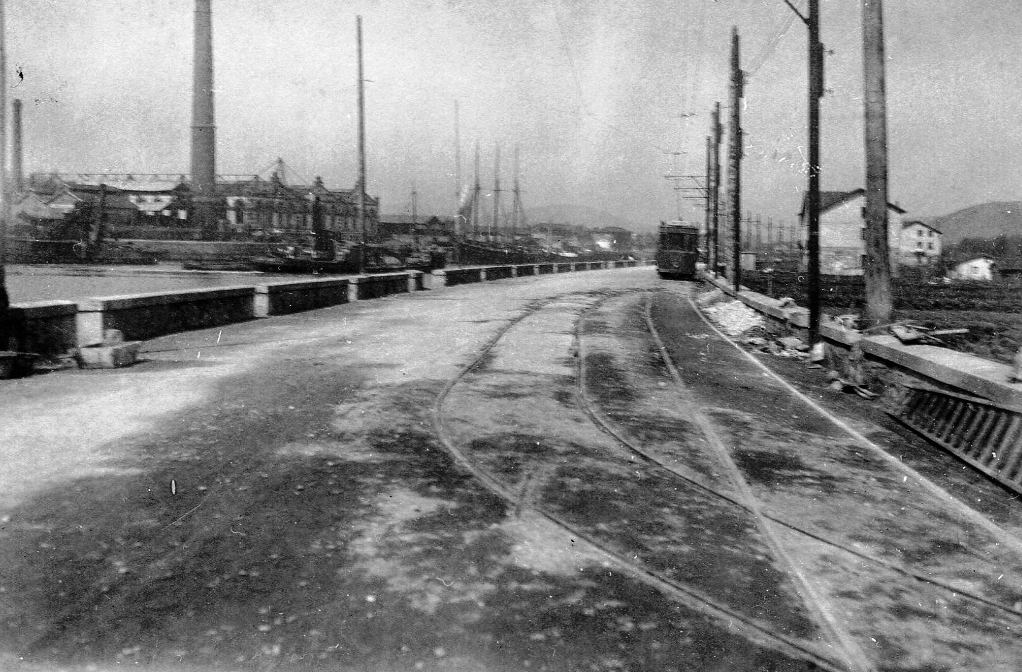 Tranvía eléctrico de Bilbao a Algorta en las inmediaciones de Zorrozaurre