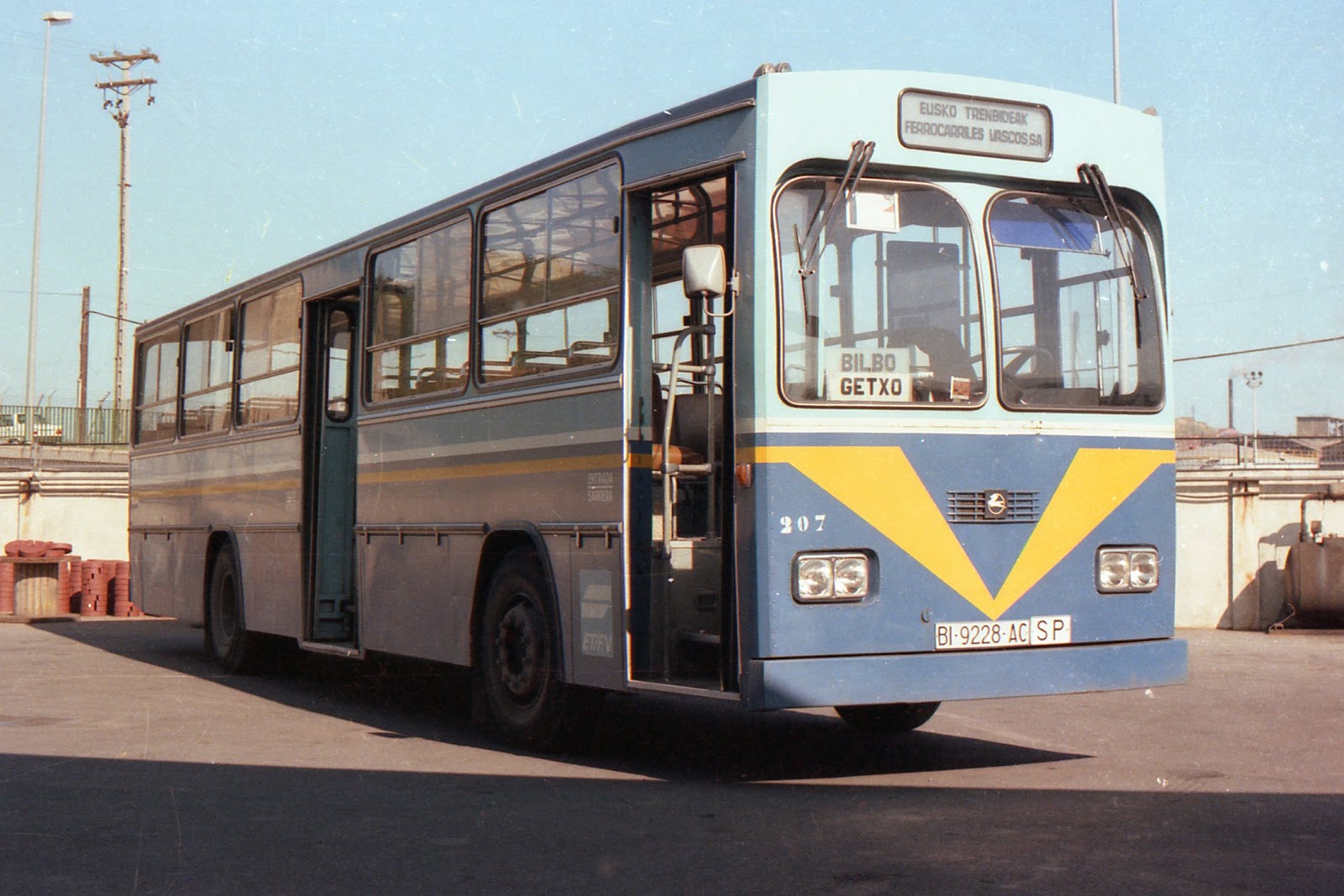El coche 218 fue uno de los autobuses que EuskoTren heredó de los antiguos FTS