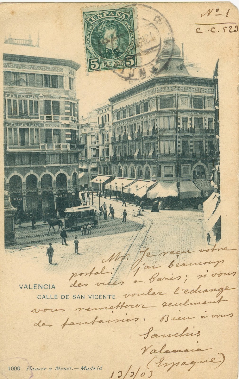 Hoy se inaugura en Valencia una serie de exposiciones dedicadas a conmemorar el 20 aniversario de la reimplantación del tranvía en la capital del Turia. La primera de estas muestras, establecida en la estación del Norte recuerda la más primitiva de las etapas de este medio de transporte en Valencia, desde los tranvías de mulas hasta la electrificación de la red. Es por ello buen momento para comentar el plano que encabeza estas líneas y que me proporcionó hace unos meses mi buen amigo Tomás Ariza.