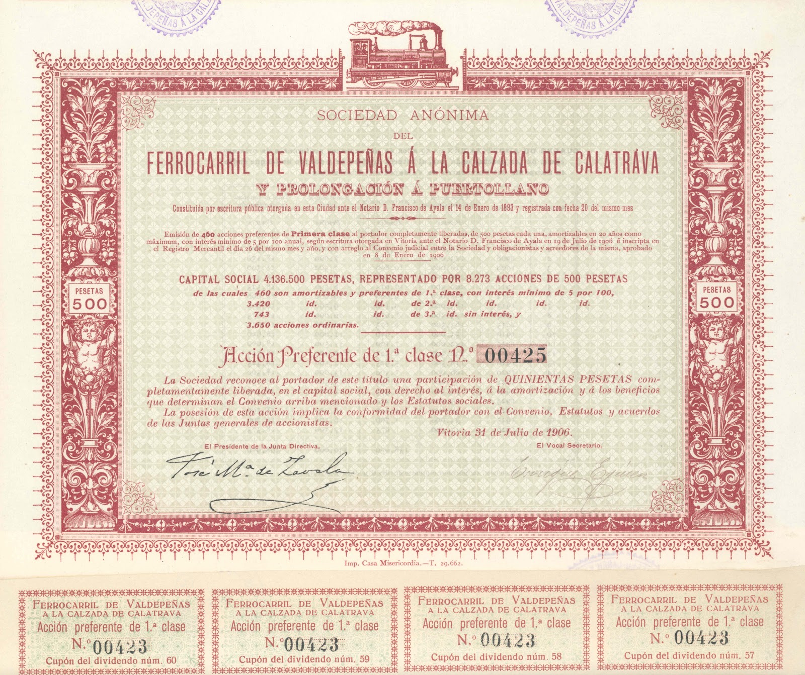 El completo trabajo de investigación realizado por Miguel Antonio Maldonado ha suscitado mi interés, no solo por la completa descripción de la historia de este pequeño gran tren, sino también por un hecho realmente inusual en la historia del ferrocarril del País Vasco. En efecto, aunque a muchos pueda sorprender esta afirmación, esta línea de vía estrecha que recorría los Campos de Calatrava, tenía origen vasco, ya que su promotor no era otro que Pedro Ortiz de Zárate, empresario, industrial y terrateniente, propietario de una extensa finca agropecuaria en la comarca. Ortiz de Zárate fue capaz de movilizar a diversos inversores de su ciudad natal, Vitoria, para financiar la construcción de este ferrocarril manchego, algo que llama verdaderamente la atención si se tiene en cuenta que, a finales de siglo, la capital alavesa apenas contaba con poco más de veinte mil habitantes y carecía de grandes industrias. Es más, en los mismos años en que estos inversores emprendieron su aventura ferroviaria en La Mancha, se paralizaron los trabajos de construcción del ferrocarril Anglo-Vasco-Navarro, que albergaba el propósito de unir Vitoria con Estella, por una parte, y con Bergara y Bilbao, por otra.