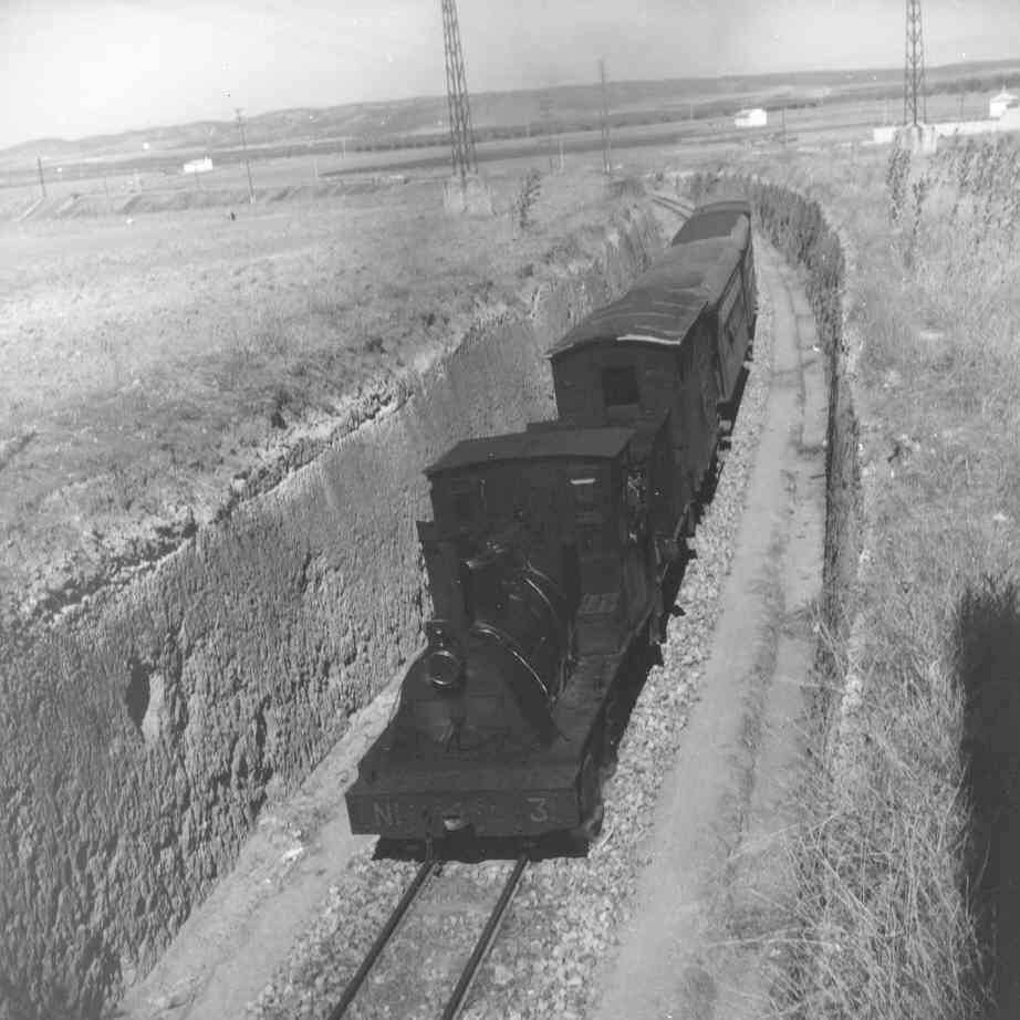 Vista de una composición del ferrocarril de Valdepeñas a Puertollano a su paso por una trinchera. Fotografía de Martin Von Simson