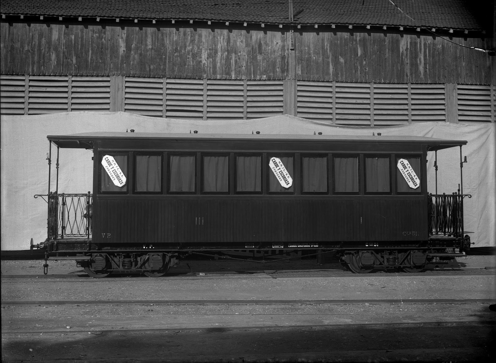 Coche de viajeros C-51, construido por Carde y Escoriaza en 1926 para el ferrocarril de Valdepeñas a Puertollano. Su compra fue financiada con la ayuda de la Caja Ferroviaria del Estado. Archivo Histórico Provincial de Zaragoza