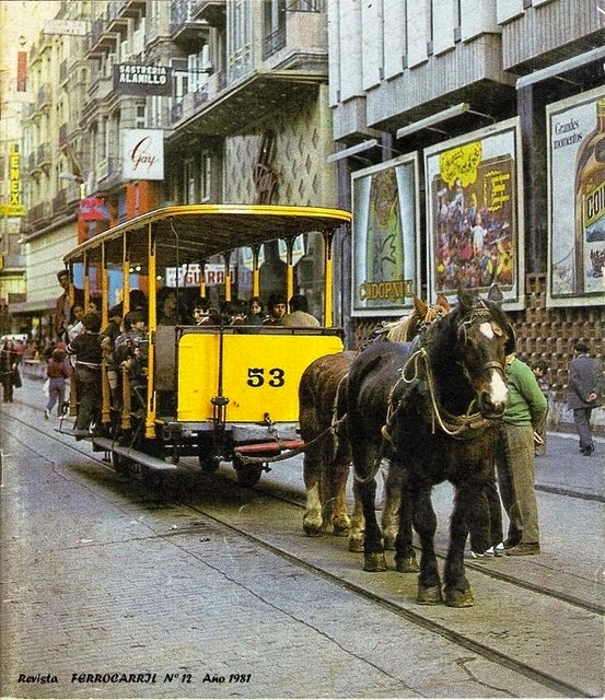 Exhibición del tranvía ahora numerado como 12, en 1981, matriculado con el número 53. fotografía de Jaume Roca publicada en la portada de la revista Ferrocarril, Nº 12. Año 1981