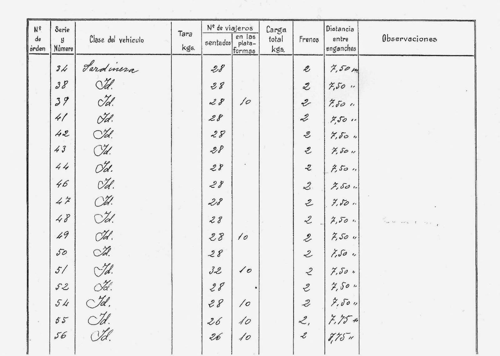 Afortunadamente, en el pasado fue una costumbre bastante habitual por parte de los constructores de material ferroviario pero, también, por parte de las empresas explotadoras, la de marcar en relieve el número, de fábrica o de matrícula, de cada uno de los vehículos. Esta costumbre estaba justificada por el hecho de que la construcción de material móvil era totalmente artesanal y la medida de las piezas entre vehículos en principio gemelos podía variar de unos a otros y, por tanto, solamente encajaban correctamente en el vehículo para el que fueron fabricadas y no en sus hermanos. Así, para evitar que por distracción, se quisiera colocar, por ejemplo, una ventana de un tranvía en su hermano, lo que luego posiblemente exigiría numerosas horas de trabajo para su reajuste, se marcaban todas las piezas.