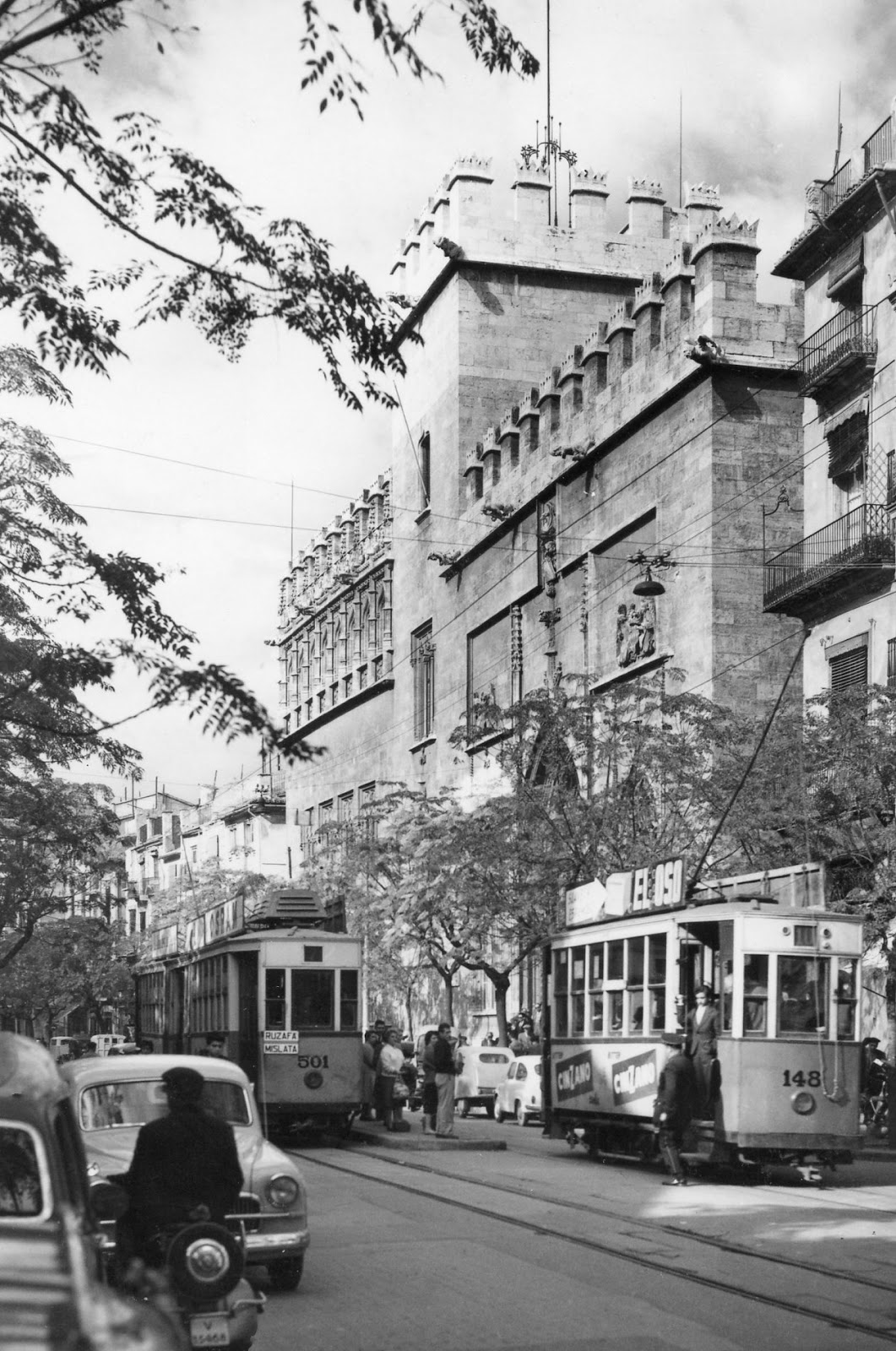 Cruce del travía 148 con el articulado 501 frente a la Lonja de la Seda. Colección de Christian Schnabel