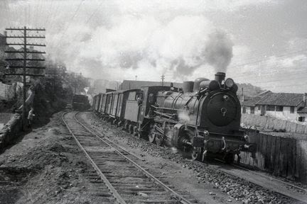 Tren de mercancías fotografiado en las proximidades de Vigo. Fotografía de Trevor Rowe. Archivo EuskoTren/Museo Vasco del Ferrocarril