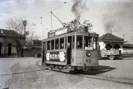 Tras la Guerra Civil, el parque de tranvías de Granada se vio reforzado con la compra de un lote de coches de ocasión procedentes de Madrid. Fotografía de Trevor Rowe. Archivo EuskoTren/Museo Vasco del Ferrocarril