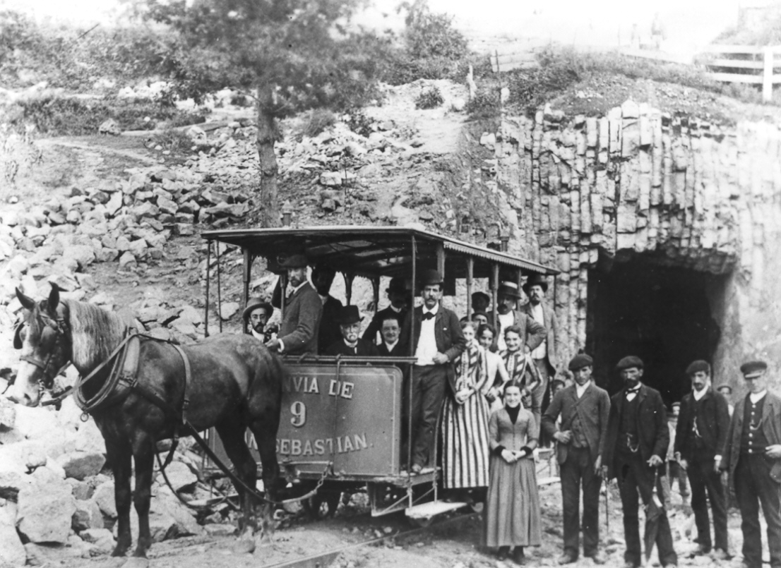 La Compañía del Tranvía de San Sebastián inició su actividad en 1887 con una pequeña línea que enlazaba las cocheras, situadas al Este de la ciudad, en el barrio de Ategorrieta, con el centro histórico (Plaza Vieja) y la playa de La Concha. Explotada con tracción animal, el servicio pronto se extendió por ambos extremos: por el Este hasta Pasajes y Rentería, por el Oeste hacia los barrios de El Antiguo y Venta Berri.