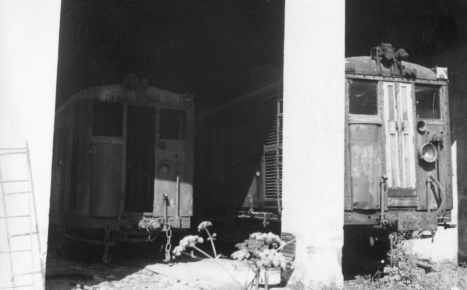 Dos automotores Beardmore abandonados en las cocheras de Andoain