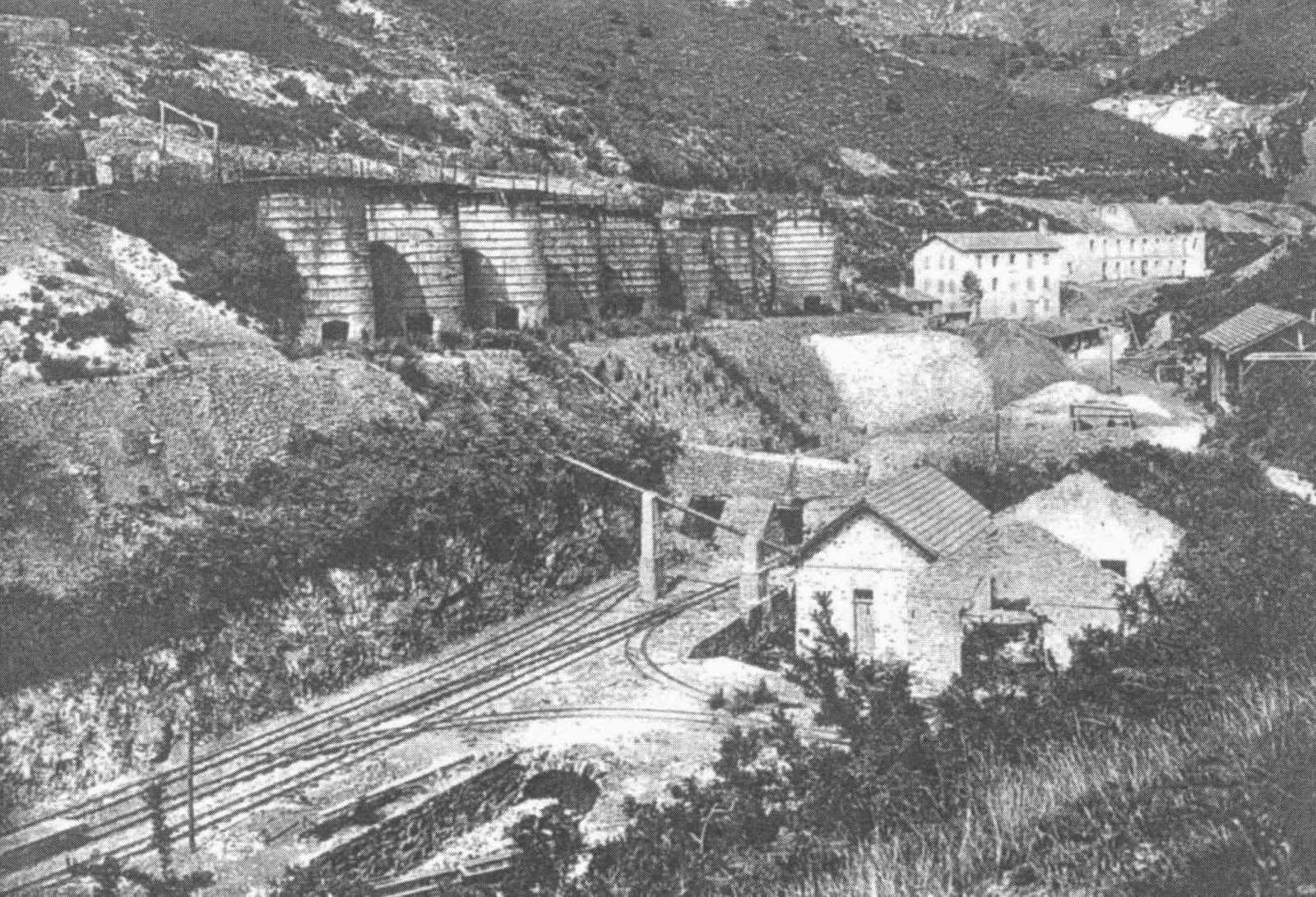 Hornos de calcinación de mineral de hierro en Arditurri. Archivo EuskoTren/Museo Vasco del Ferrocarril