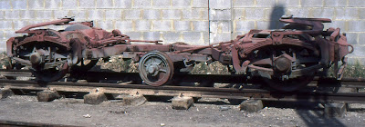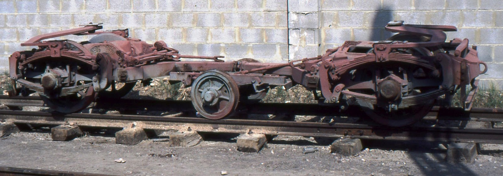 Coche 307 de los tranvías de Sevilla, montado sobre un truck de tres ejes suministrado por la firma suiza SLM