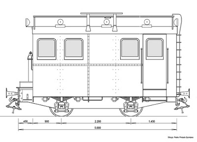 Esquema de las dresinas de Ferrocarriles Vascongados, construidas a partir de los tractores Berliet. Dibujo de Pedro Pintado Quintana