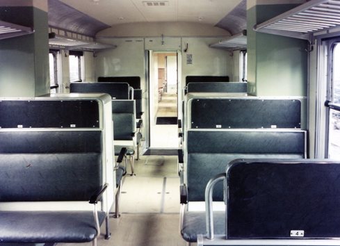 Vista de un automotor desde el testero trasero, en el que se observa la cabina auxiliar. Archivo EuskoTren/Museo Vasco del Ferrocarril