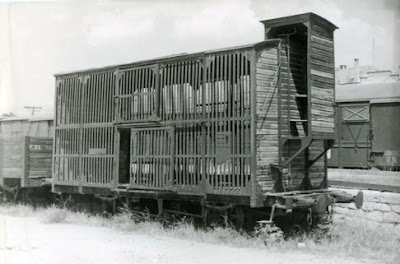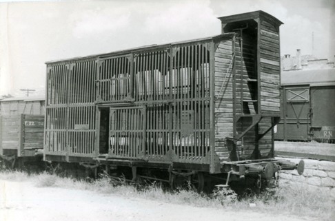 Vagón jaula del ferrocarril de Villena a Alcoy y Yecla. Fotografía de Jordi Casaponsa. Fondo Ángel López Sanz. Archivo EuskoTren/Museo Vasco del Ferrocarril