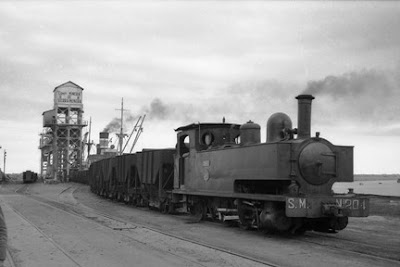 Maniobras del ferrocarril de Sierra Menera en el Puerto de Sagunto. Fotografía de Trevor Rowe, Archivo EuskoTren/Museo Vasco del Ferrocarril