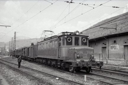 Locomotora 7100 de la Compañía del Norte, fotografiada en Ripoll. Fotografía de Trevor Rowe, Archivo EuskoTren/Museo Vasco del Ferrocarril