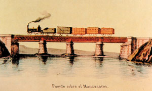 Jenaro Pérez Villamil mantuvo un claro interés por la documentación de los inicios de los ferrocarriles. Evidentemente, se sintió muy atraído por la innovación industrial y tecnológica del ferrocarril, de ahí el cuadro “Explosión de una locomotora”, donde se intenta captar el estallido de una locomotora. Igualmente, Mariano Fortuny Marsal en “Descarrilamiento de un tren. Catástrofe del Pontón del Alabern”, de 1863, representa uno de los fenómenos que más solía llamar la atención por la época, como era el accidente ferroviario, aspecto ampliamente tratado en las ilustraciones de la época, pero que no era muy común en la pintura, siendo este uno de los poco ejemplos que aborda este tema. Realmente, durante este periodo fueron numerosos los descarrilamientos de trenes y los choques, en general, accidentes vistosos por sus explosiones. Será a partir de 1855, con la ley de ferrocarriles, cuando empiecen a aparecer señales visuales y de oído con las que se pretendían ordenar el tráfico de las líneas y ante todo evitar este tipo de accidentes. Darío de Regoyos, aunque nativo de Ribadesella, estuvo más vinculado con el País Vasco, siendo los motivos industriales, fábricas, puentes metálicos, puertos y ferrocarriles parte de su repertorio temático y pictórico. Se adentra en el mundo industrial por su padre, el arquitecto Darío de Regoyos y Molenillo, cuya estancia en Asturias se relaciona con el establecimiento del ferrocarril de Langreo. Entre sus principales obras relacionadas con el ferrocarril, debemos destacar “Viaducto de Ormaiztegui”, “Descarga en Pasajes” y “Tren en marcha”. En el primero de estos cuadros, se puede observar uno de los primeros viaductos de hierro, que se hicieron en España, donde se combina una locomotora con el paisaje natural, generando una muestra de motivos antagónicos, es decir, humo y nubes, hierro y naturaleza, que se funden en una nueva composición.