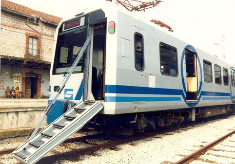 Las unidades 300 estaban especialmente concebidas para el servicio en el "Topo". Su puerta frontal abatible, que permitía la evacuación en los largos túneles de la línea, representó una importante novedad tecnológica en su momento. Fotografía de Juanjo Olaizola Elordi