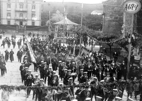 La banda de música ameniza la inauguración del Ferrocarril del Bidasoa. Archivo EuskoTren/Museo Vasco del Ferrocarril