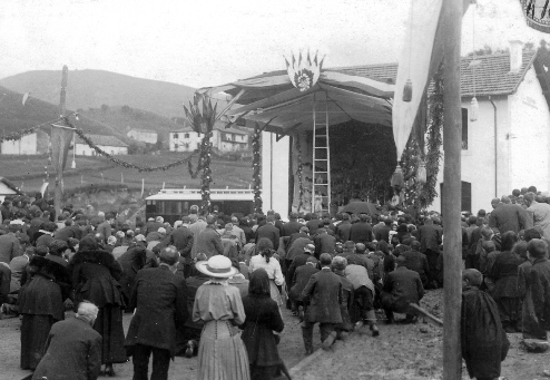 Misa de campaña en la estación de Elizondo. Archivo EuskoTren/Museo Vasco del Ferrocarril