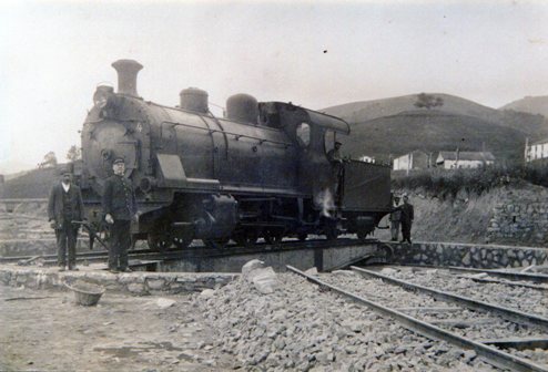 Locomotora de vapor sobre el puente giratorio de Elizondo. Archivo EuskoTren/Museo Vasco del Ferrocarril