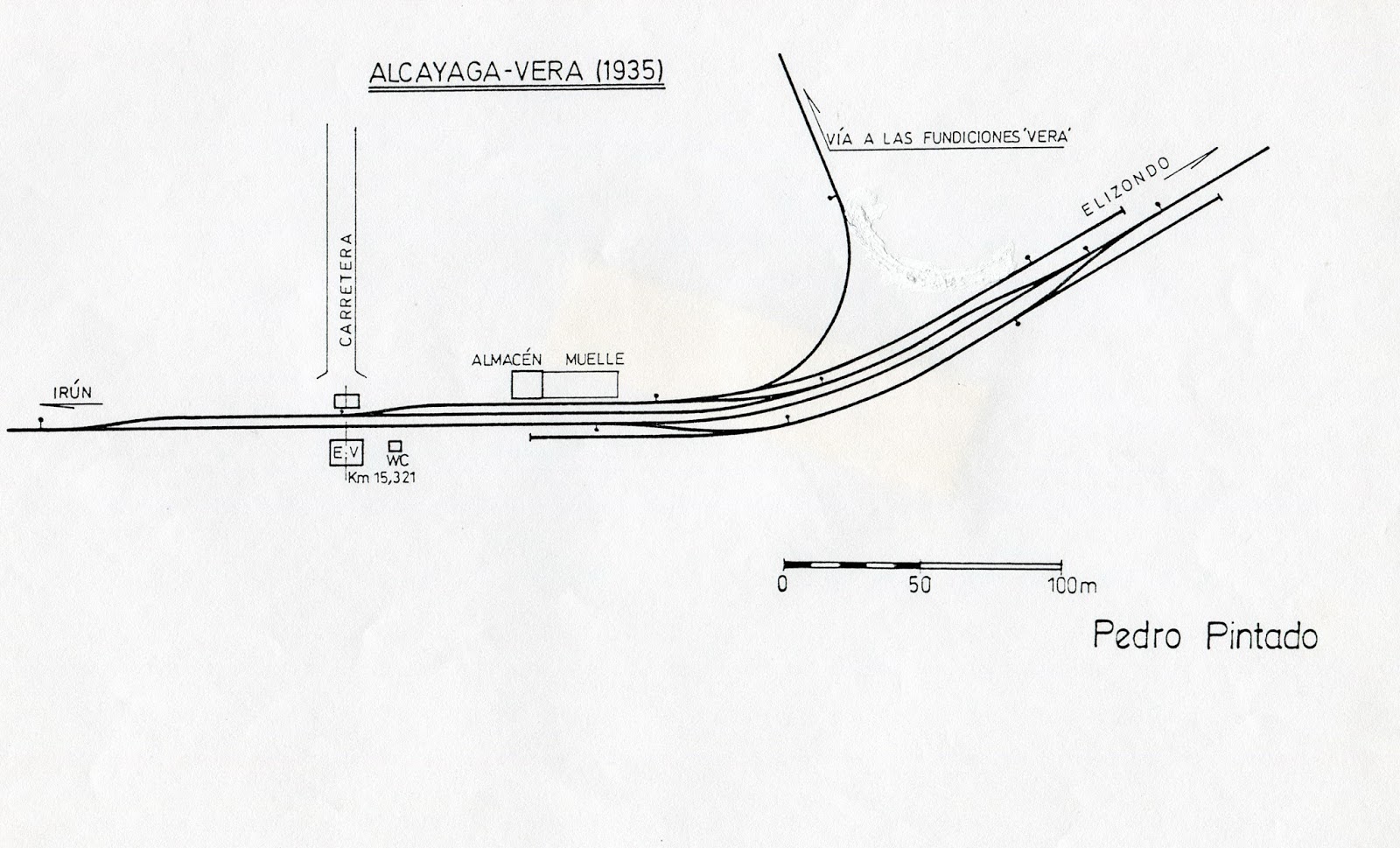 Esquema de vías de la estación de Lesaka-Etxalar. Dibujo de Pedro Pintado Quintana