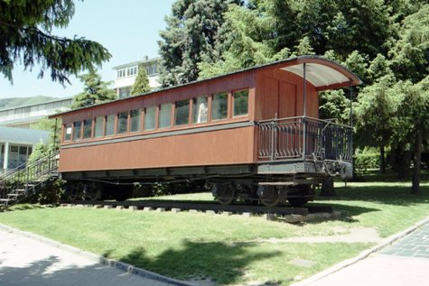 Antiguo coche del Ferrocarril del Bidasoa, reutilizado en Villablino (León) como oficina de turismo. Fotografia de Juanjo Olaizola Elordi