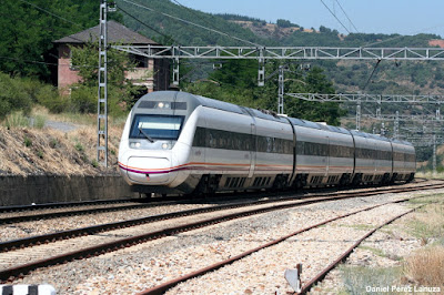 | En el mismo punto de la imagen anterior, un tren especial circulando por la línea de Ponferrada hacia Galicia, por no estar disponible el acceso gallego por Zamora. |