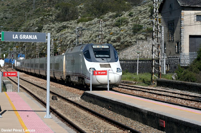 Tras un pequeño túnel, el lugar del desprendimiento de febrero de 2010 que involucró a la 251 con tren de madera en rollo, y con una curva y contracurva con excelentes vistas al valle del río Tremor, llegamos a la estación de La Granja de San Vicente, donde se encuentra una de las subestaciones eléctricas de la rampa. En el momento de dedicarnos más a fondo a esta estación comentaremos la destrucción de su edificio de viajeros original y sustitución por una pequeña caseta similar a la de la estación de Dehesas cerca de Ponferrada.
