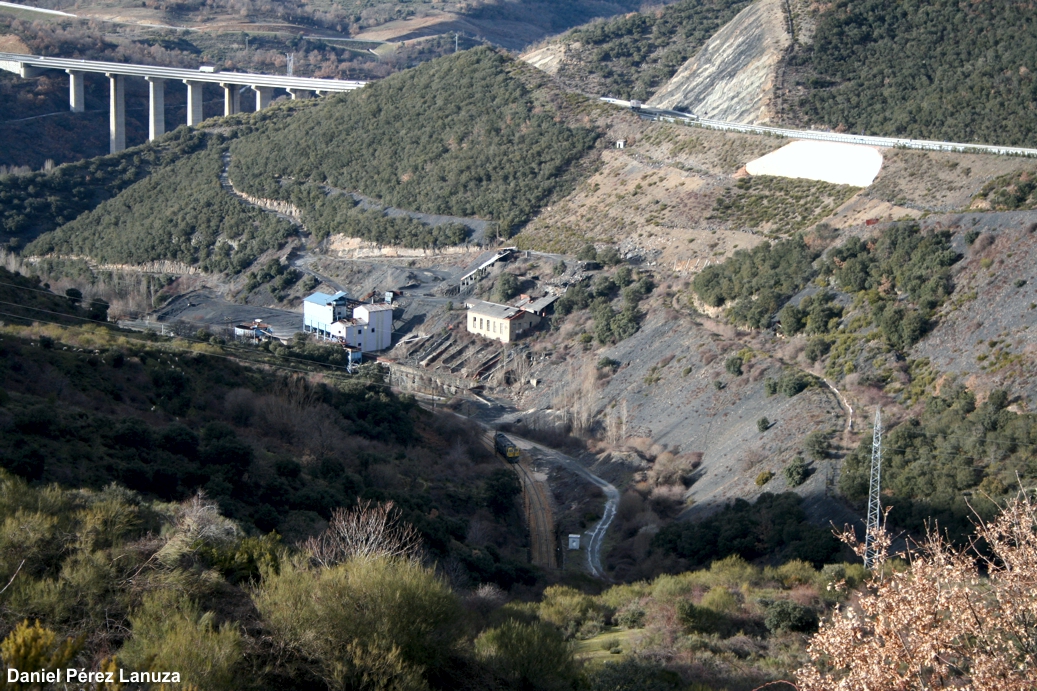 | Tren especial fletado por la Asociación Leonesa de Amigos del Ferrocarril, con motivo de un Toral en Tren, desplazándose entre Folgoso y La Granja, sobre la autovía A-6 |