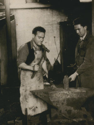 Herrero de Material Móvil en los talleres de Vía y Obras de Orense, años sesenta |