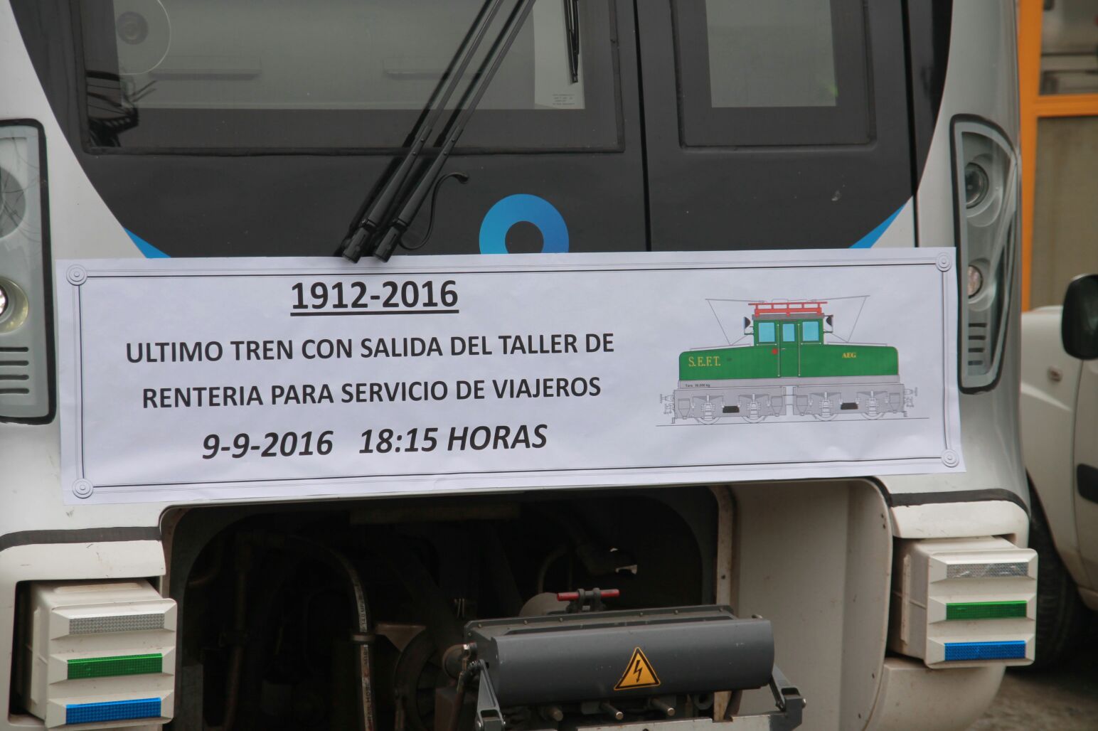 Ayer, viernes 9 de septiembre de 2016 salía desde los históricos talleres de EuskoTren en Rentería la última unidad para servicio de viajeros. Discretamente, sin más ruidos que el modesto homenaje tributado por un pequeño grupo de amigos del ferrocarril, se cerraba un episodio más de la historia de los ferrocarriles de Euskadi, iniciada hace ya 104 años cuando la Compañía del Ferrocarril de San Sebastián a la Frontera Francesa levantó estas dependencias para atender el material móvil de la línea que figuraba en su razón social, el popular "Topo".