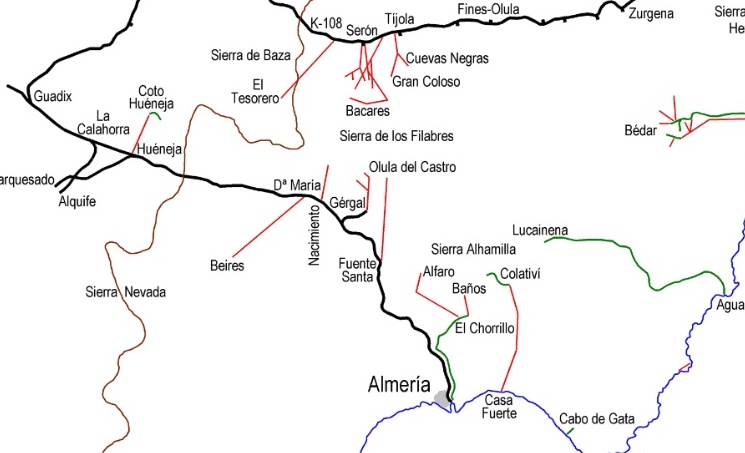 Las minas de Alquife situadas en la provincia de Granada, al pie de sierra Nevada, y muy cerca de los límites con la de Almería, eran desde tiempo inmemorial uno de los grandes yacimientos de hierro de España. En cualquier caso, fue durante los siglos XIX y XX cuando su explotación se intensificó en gran medida y se hizo necesario también potenciar su transporte hacia su salida natural por el puerto de Almería. Esta fue una de las razones (otra era dar salida a la producción de plomo de Linares) que impulsaron la construcción del ferrocarril de Linares a Almería por la Compañía de los Caminos de Hierro del Sur de España.