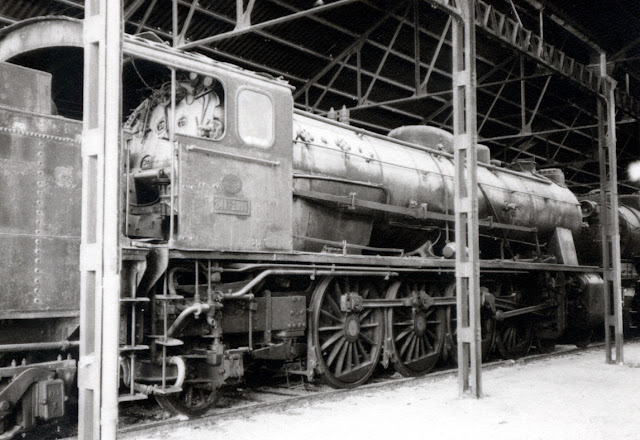 Bastantes años después de estos hechos, cuando ya pude viajar y fotografiar por mi cuenta, y también cuando la tracción vapor ya había finalizado, localicé a la 1701 preservada en un cocherón de la estación de Cuenca junto con otras viejas glorias del vapor tal como describí en una de las primeras entradas de este blog.