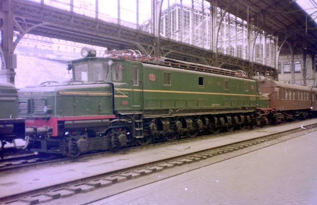 Las "siete mil doscientas" eran locomotoras construidas en 1928 por Babcock&Wilcox y Brown&Broveri con una potencia ya de unos 3200 caballos y con un imponente capot a cada extremo montados sobre sendos bogies. Tenían un aspecto impresionante y con razón recibían el apelativo de "cocodrilos" como otras locomotoras hermanas europeas (si bien los puristas son bastante restrictivos sobre cuales de este tipo de locomotoras pueden recibir realmente este nombre y, en sentido estricto, parece que las 7200 no lo eran). En Príncipe Pío, la 7206 estaba pintada de verde, tal como Renfe decoraba a sus locomotoras eléctricas, pero varios años después pasó al Museo de Vilanova donde recibió los colores de la Compañía del Norte, los primeros que tuvo y que creo que, realmente, la sentaban muy bien.