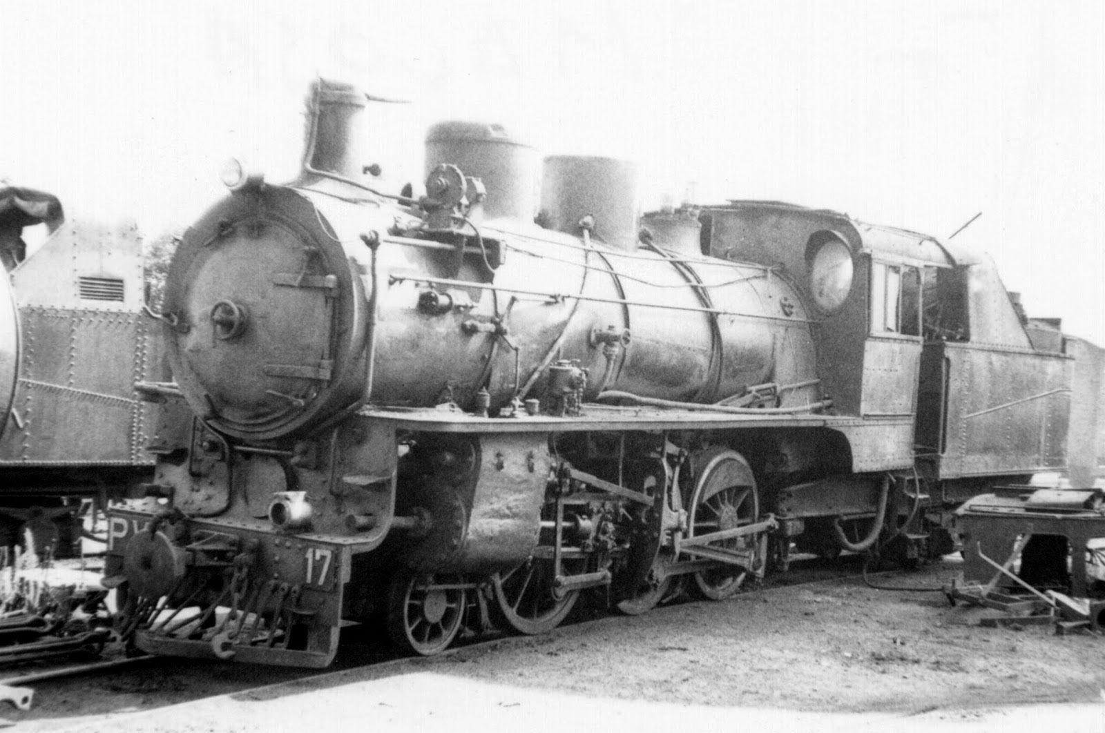 En mi visita de finales de los 79, pude fotografíar a la 17. La 17 había sido fabricada en 1914 y procedía también de los Ferrocarriles Vascongados, habiendo sido comprada por el Ferrocarril de La Robla en 1958. En 1961 la adquirió el Ponferrada-Villablino.
